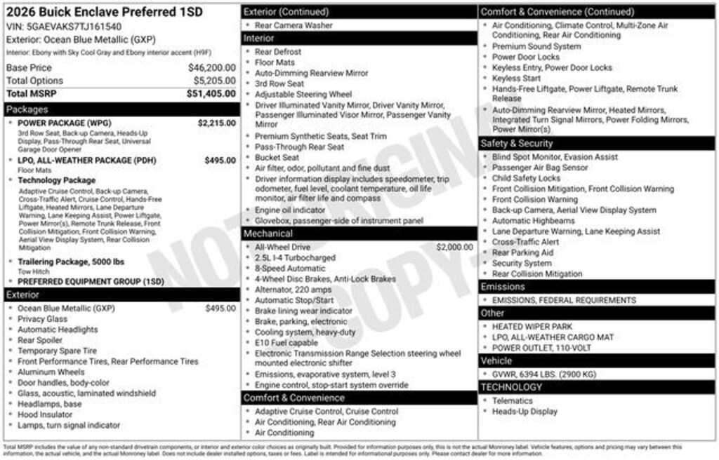 Recent Arrival! Ocean Blue Metallic 2026 Buick Enclave Preferred 4D Sport Utility AWD 2.5L DOHC 8-Speed Automatic