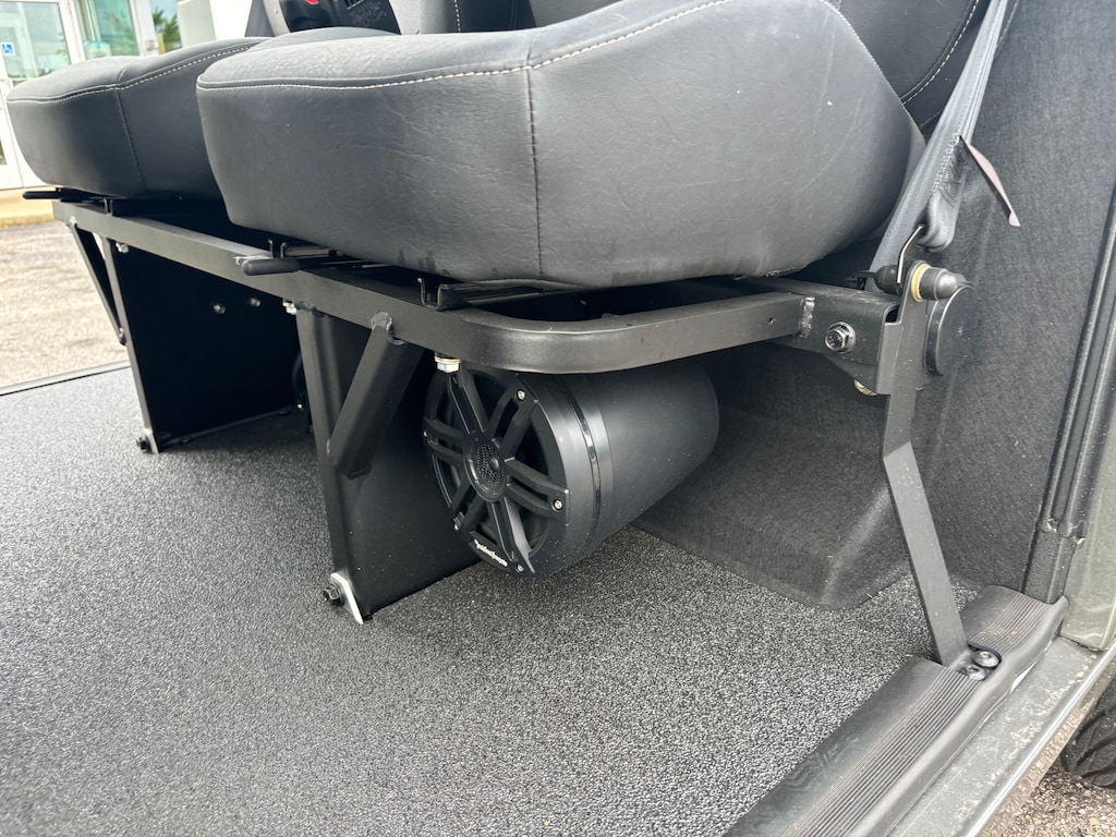 - Spacious seating for four with automotive-style safety features including 3-point seat belts and an automotive-grade windshield