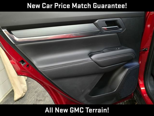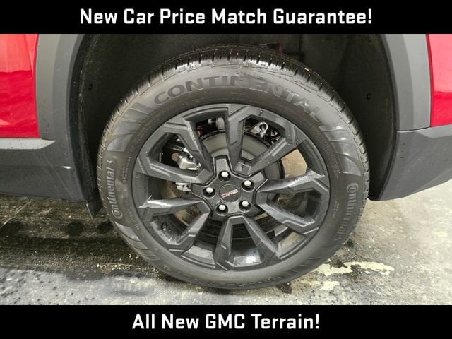 The Elevation Premium Package takes this Terrain to new heights, offering a host of exclusive upgrades such as a Gloss Black grille, Brushed Aluminum roof rails, and 19-inch Gloss Black Painted Aluminum wheels. Step inside and you'll be greeted by the warm embrace of heated and ventilated leather seats, along with a heated steering wheel and wireless phone charging for your convenience.