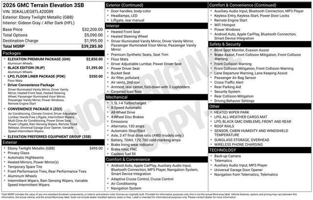 Recent Arrival! Ebony Twilight Metallic 2026 GMC Terrain Elevation 4D Sport Utility AWD 1.5L DOHC 8-Speed Automatic with Overdrive