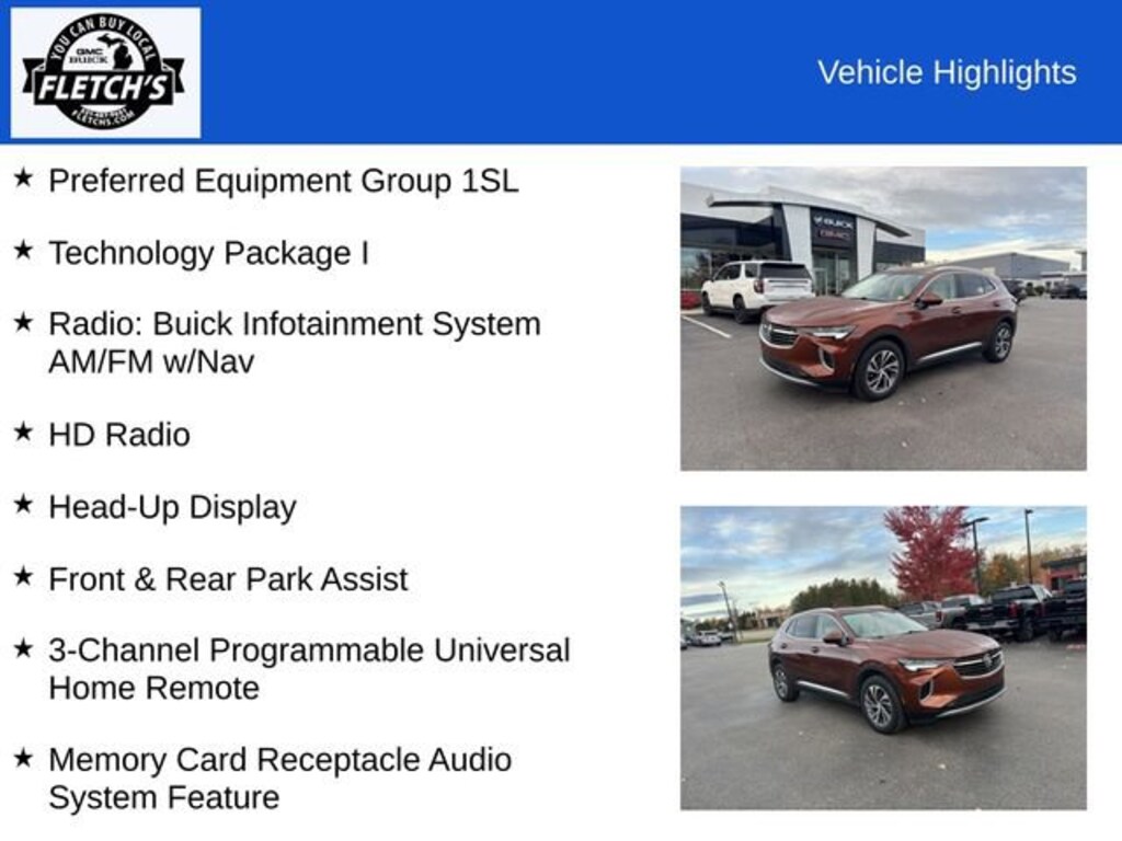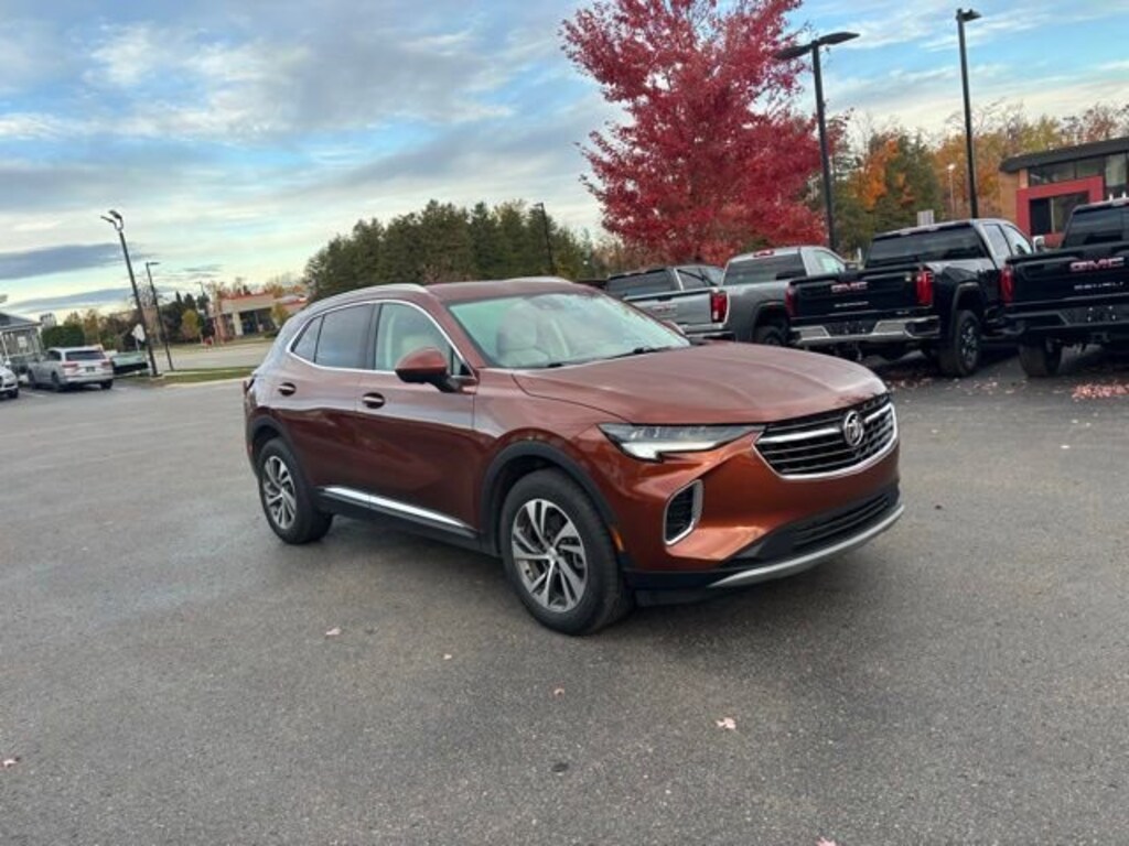 Recent Arrival! Burnished Bronze Metallic 2021 Buick Envision Essence 4D Sport Utility Once you've found your perfect match, our hassle-free delivery process ensures that your dream car is delivered to your doorstep promptly and securely!Envision Essence, 4D Sport Utility, 2.0L Turbocharged, 9-Speed Automatic, AWD, Burnished Bronze Metallic, Whisper Beige Seats Leather, 3-Channel Programmable Universal Home Remote, Front & Rear Park Assist, HD Radio, HD Surround Vision, Head-Up Display, Memory Card Receptacle Audio System Feature, Preferred Equipment Group 1SL, Radio: Buick Infotainment System AM/FM w/Nav, Technology Package I.22/29 City/Highway MPGOur family has been committed to serving the Petoskey community for decades, from providing the city's school buses to offering a fantastic selection of new and used cars, trucks and SUVs in our Michigan Buick GMC Audi dealership. We strive to be your trusted dealership of choice, and we think we know a thing or two about how to do that thanks to a long legacy satisfying customer needs and being an active participant in the community in Petoskey and beyond.