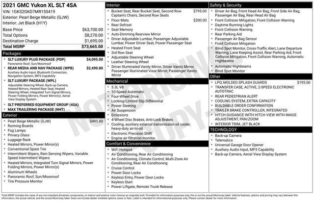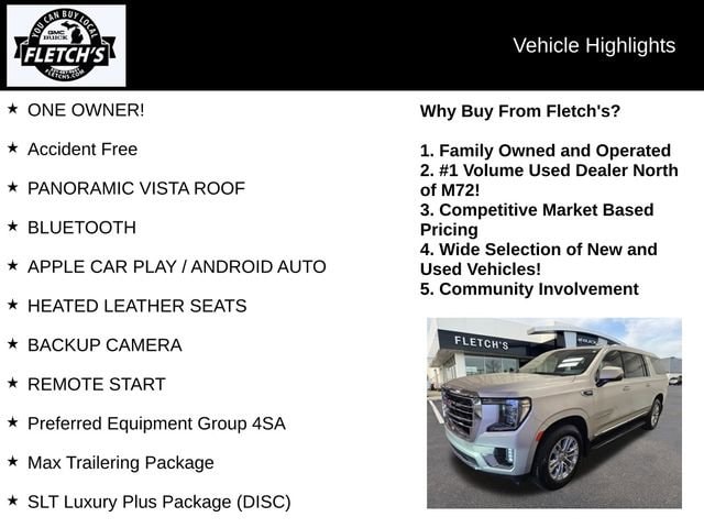 Whether you're transporting your family, towing your boat, or embarking on a road trip, this 2021 GMC Yukon XL SLT is the perfect companion. Its exceptional capabilities, luxurious amenities, and advanced technology make it a standout in the full-size SUV segment. Visit our showroom today to experience the Yukon XL SLT for yourself and discover why it's the ultimate choice for those seeking uncompromising performance and comfort.