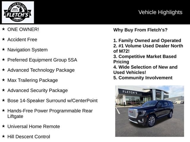 Safety and convenience are also top priorities in this Yukon Denali. The suite of advanced driver-assistance technologies includes Automatic Emergency Braking, Lane Keep Assist, Rear Cross-Traffic Alert, and more. The Hands-Free Power Programmable Rear Liftgate and Wireless Charging provide added functionality and ease of use.