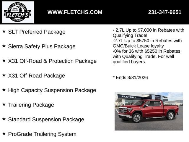 For those who venture off the beaten path, the Sierra 1500 SLT is equipped with the X31 Off-Road & Protection Package, featuring an off-road-tuned suspension, hill descent control, and underbody skid plates. Whether you're towing a heavy load or navigating rugged terrain, the Sierra 1500 SLT is ready to take on the challenge.