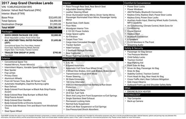 Whether you're looking for a capable family SUV or a versatile off-road companion, this 2017 Jeep Grand Cherokee Laredo has the features and performance to meet your needs. With its sleek red exterior and well-equipped interior, this Grand Cherokee is sure to turn heads wherever you go.